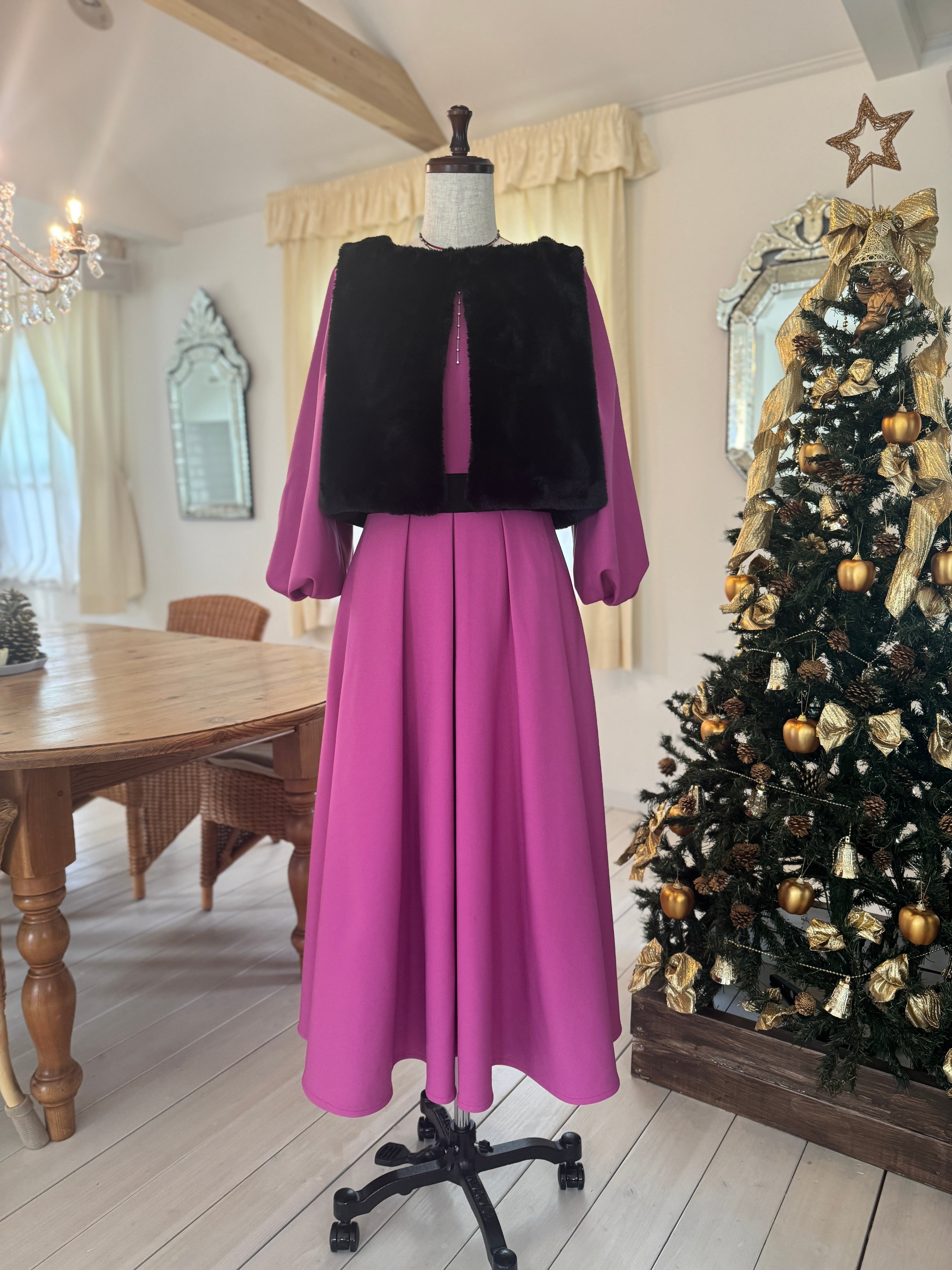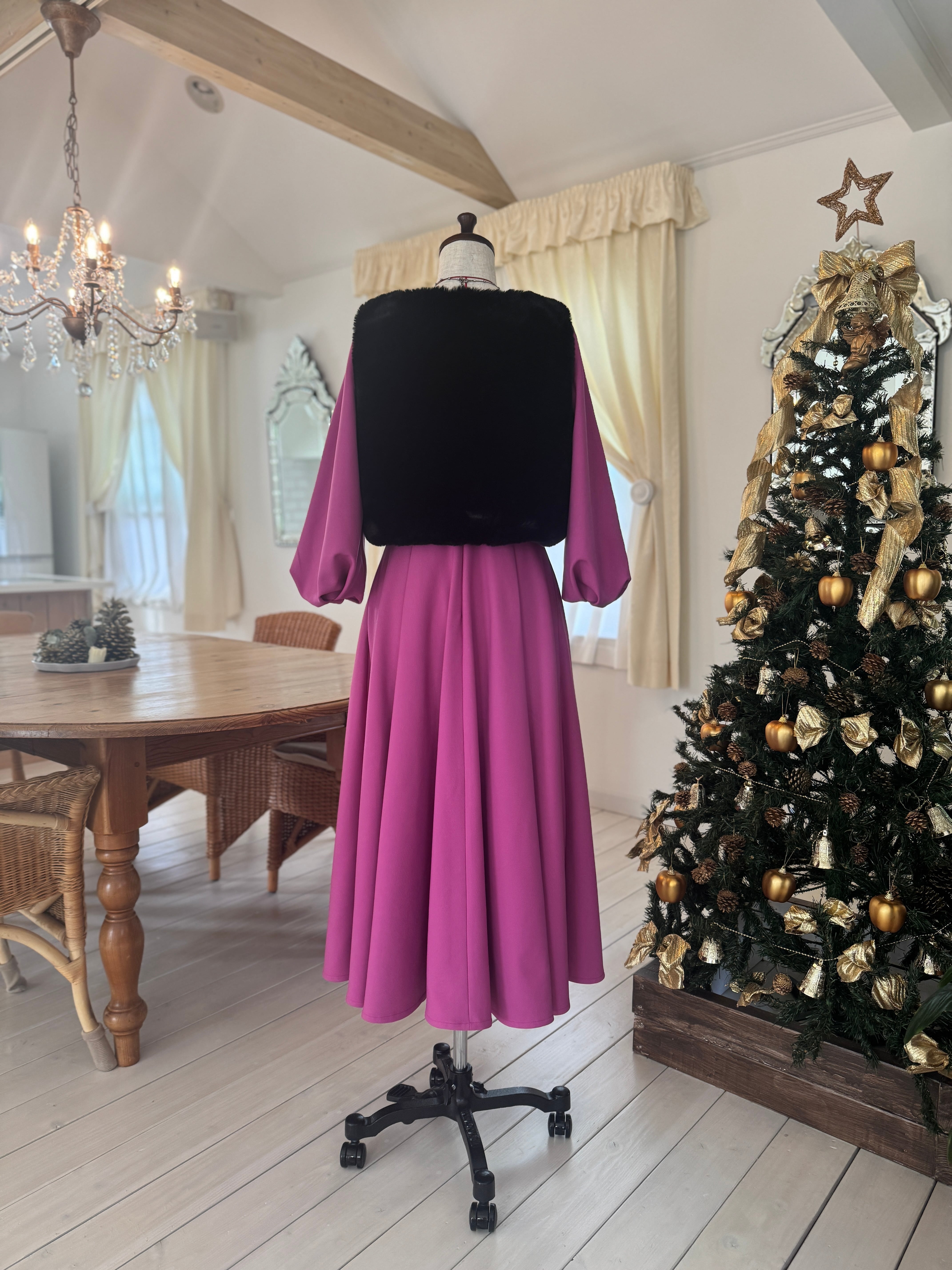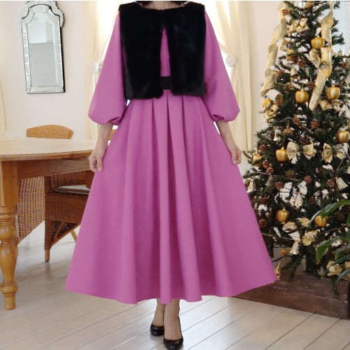 【限定1着】冬の華 マゼンダワンピース(ベスト付)